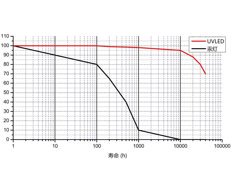 紫外LED器件采用先進的紫外輻射源,具有極高的能源效率(約30%),極高的有效波長選擇性(半功率波長帶寬5nm),極高的使用壽命(30000小時),紅外發(fā)熱低,不產(chǎn)生臭氧,更適于交聯(lián)聚烯烴等材料的交聯(lián)固化。