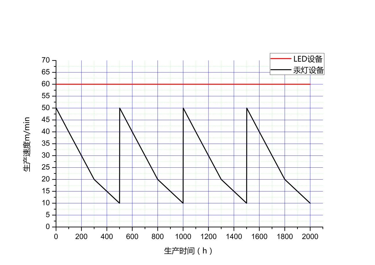 汞燈輻照設備與LED輻照設備生產(chǎn)速度曲線對比